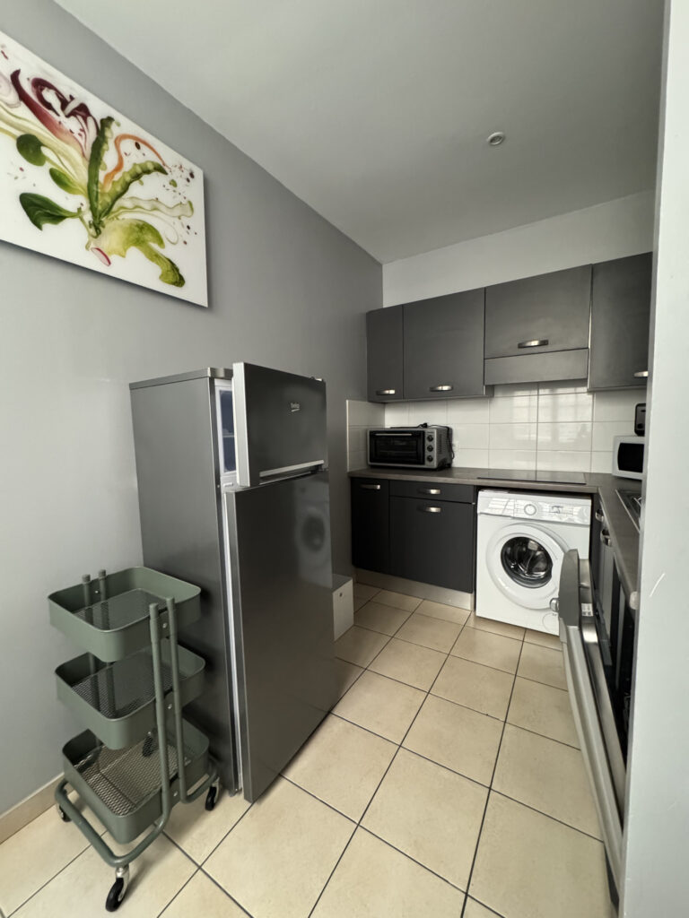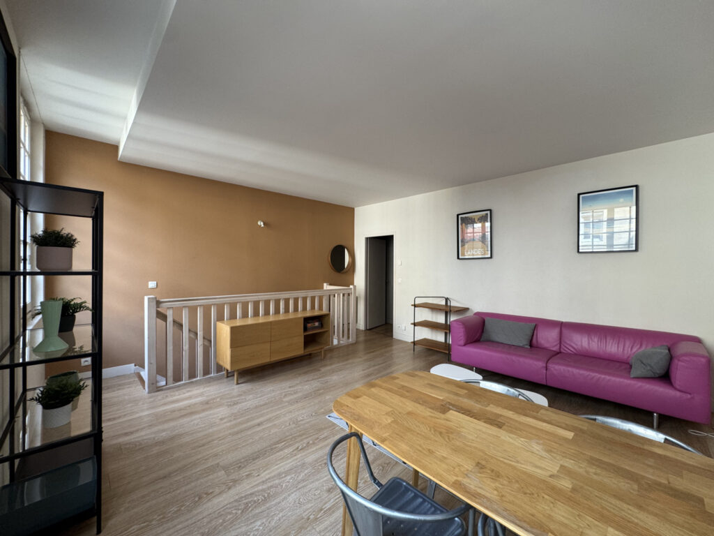 L’appartement propose au rez-de-chaussée un vaste séjour lumineux avec cuisine équipée, un grand salon, un WC séparé.