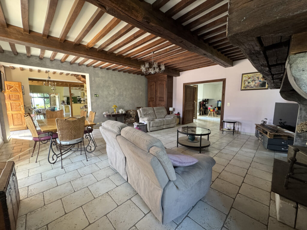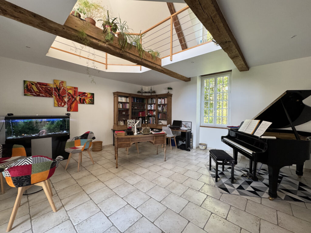 Un grand salon chaleureux avec sa cheminée d’origine, un bureau cathédrale, une buanderie et un WC indépendant complètent le rez-de-chaussée.