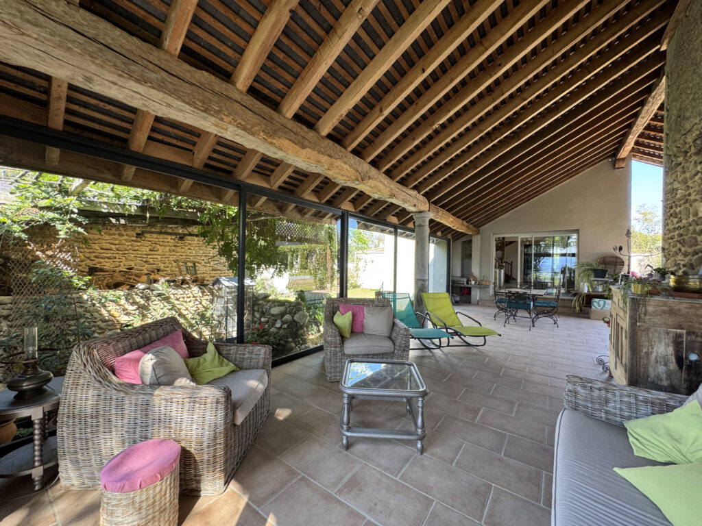 Dès l’entrée, vous serez séduit par le charme authentique et les beaux volumes qu’offre cette propriété. La vaste cuisine familiale s’ouvre sur une véranda lumineuse, parfaite pour partager vos repas tout au long de l’année face au panorama Pyrénéen.