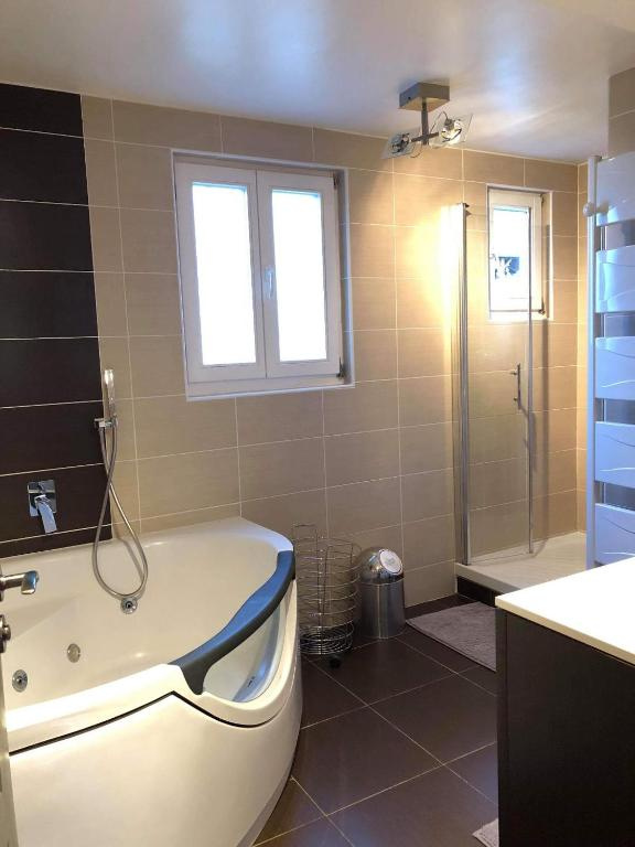 Au rez-de-chaussée, vous découvrirez un premier appartement comprenant, trois chambres, deux salles d’eau, un WC séparé et un vaste salon/séjour lumineux avec cuisine équipée, ouvrant sur une terrasse avec jardin et offrant une belle vue sur les Pyrénées.