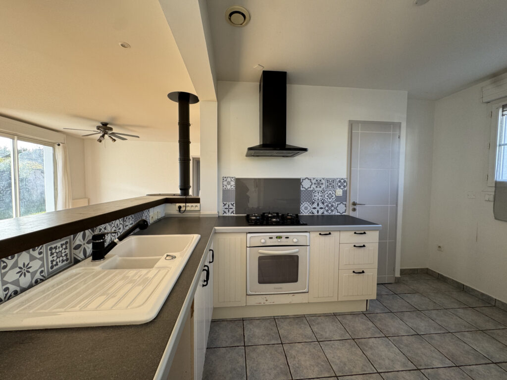 Cette maison spacieuse et lumineuse, exposée sud, se compose, au rez-de-chaussée, d’une entrée accueillante, d’un vaste séjour/salle à manger baigné de lumière, d’une cuisine ouverte avec buanderie attenante, de deux chambres, d’une salle de bain avec douche et baignoire, ainsi que d’un WC indépendant.