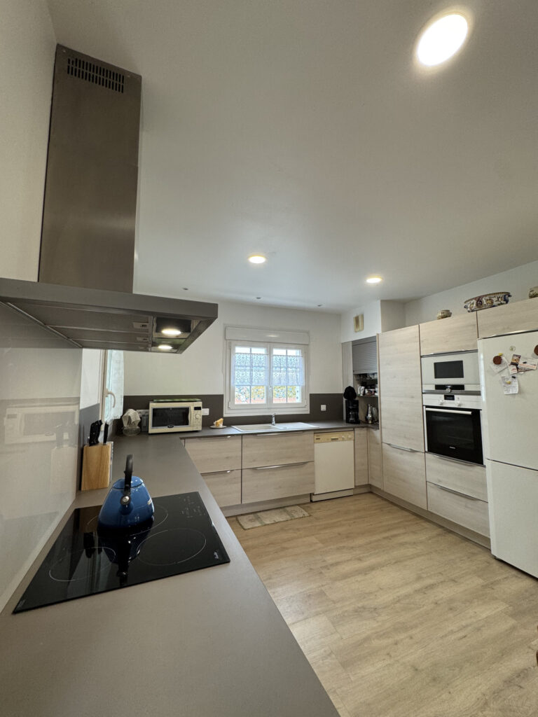 Au rez de chaussée, une vaste entrée déssert un espace de vie entièrement ouvert sur l’extérieur; une cuisine neuve contemporaine, un salon avec sa cheminée, une salle à manger, un espace bureau indépendant donnant sur le jardin et la piscine, le tout étant baigné de lumière et sans vis à vis.