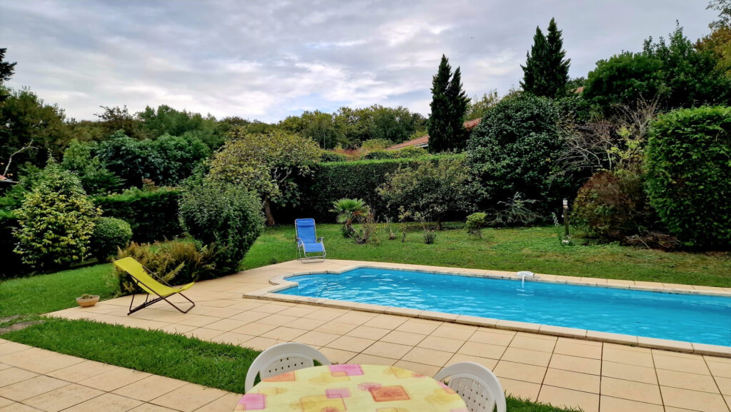 L’extérieur sans vis à vis, bien arboré, est tout aussi agréable, proposant un jardin tourné autour de la piscine et d’une très grande terrasse pour profiter des belles journées d’été.